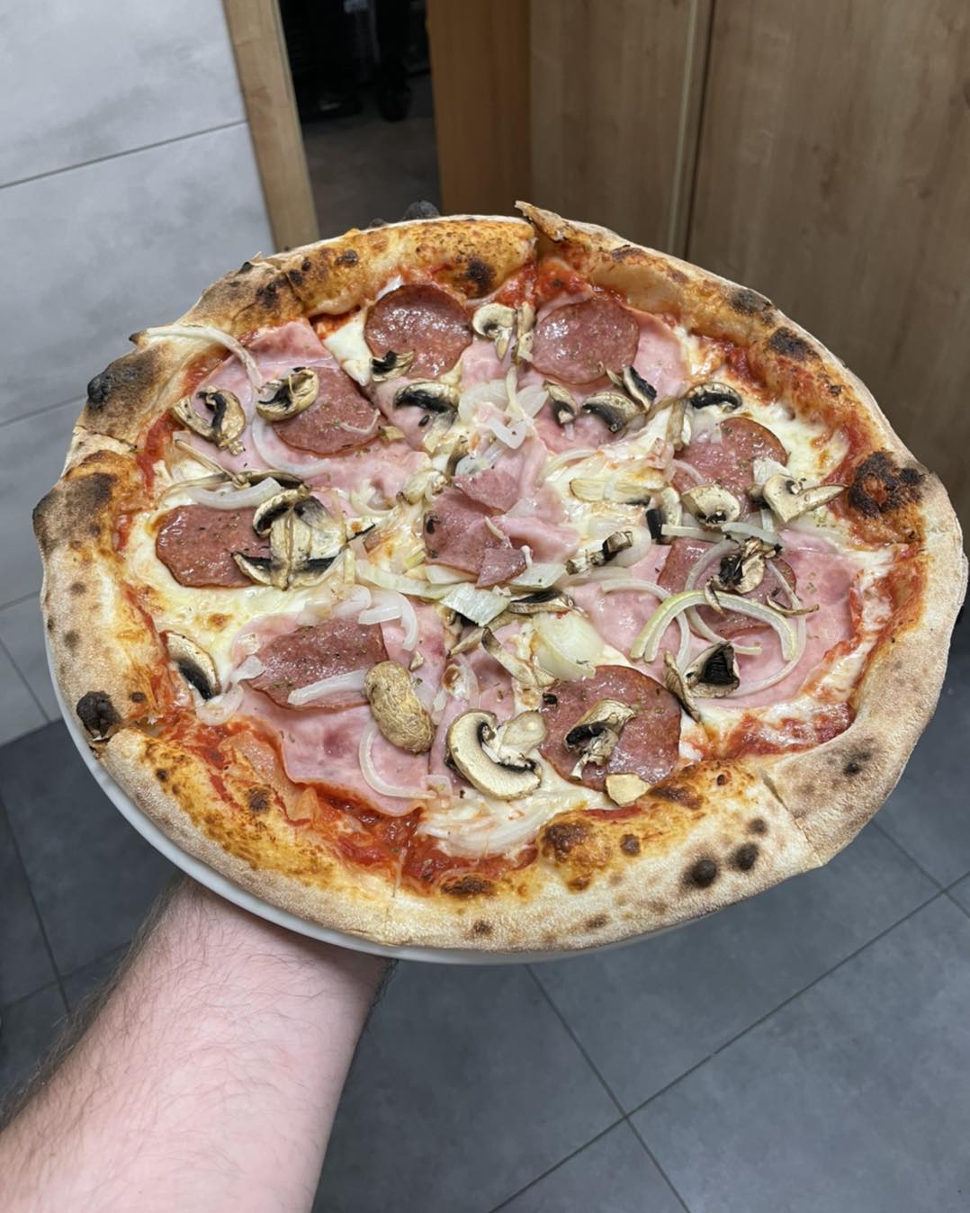 kvalitnmí těsto, rajčatové sugo, mozzarella a kvalitní ingredience